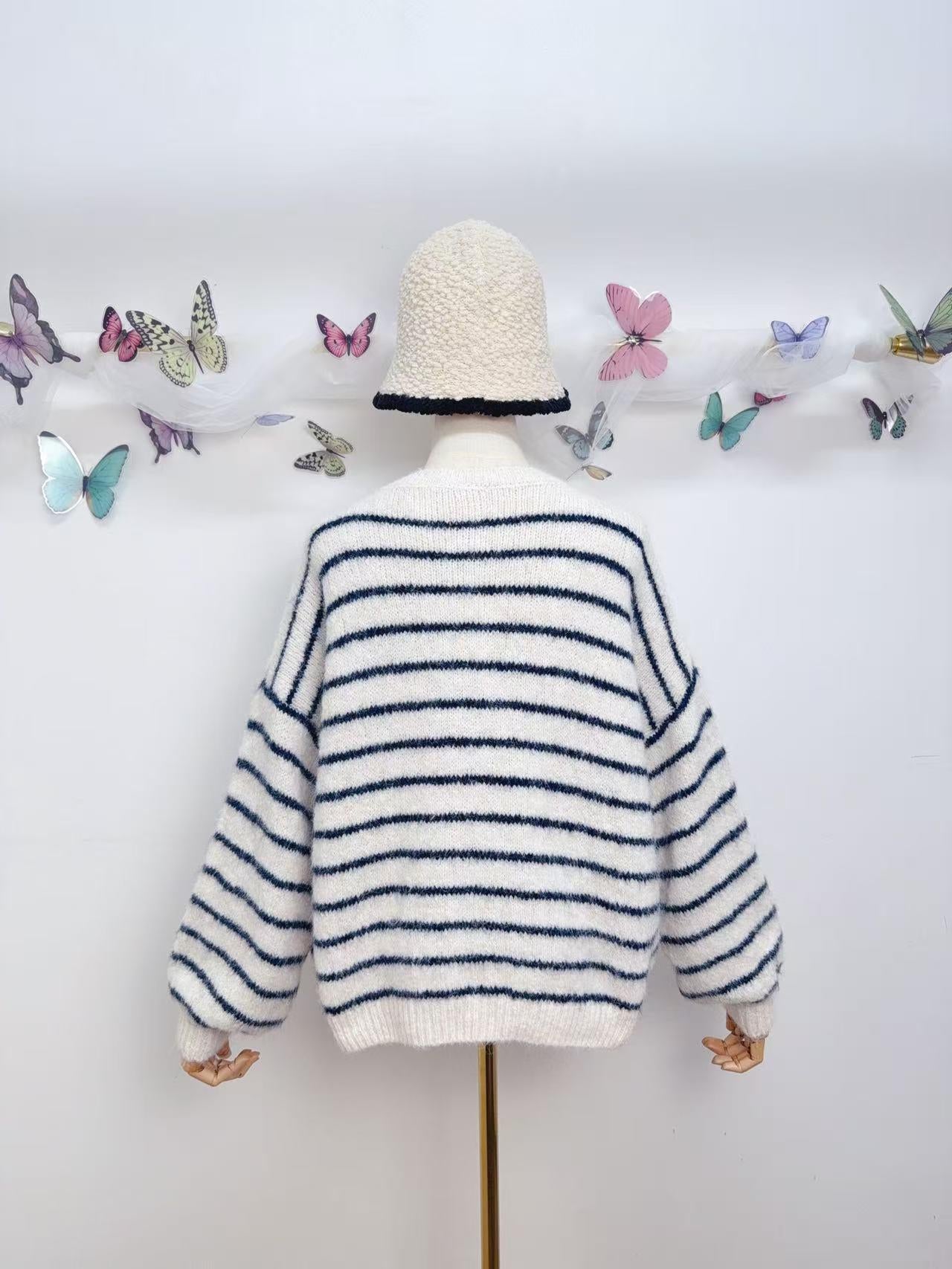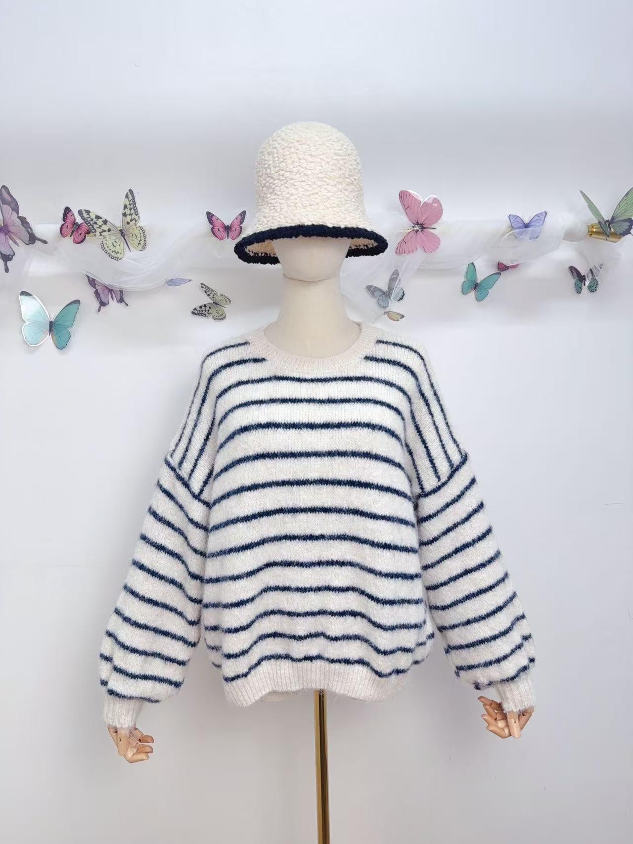 Qui a dit que les rayures c’était classique ? Ce pull rayé marine et blanc casse les codes avec sa maille fluffy ultra douce et sa coupe oversize parfaite pour un look chill et stylé. Il est hyper agréable à porter et ne gratte pas, promis.