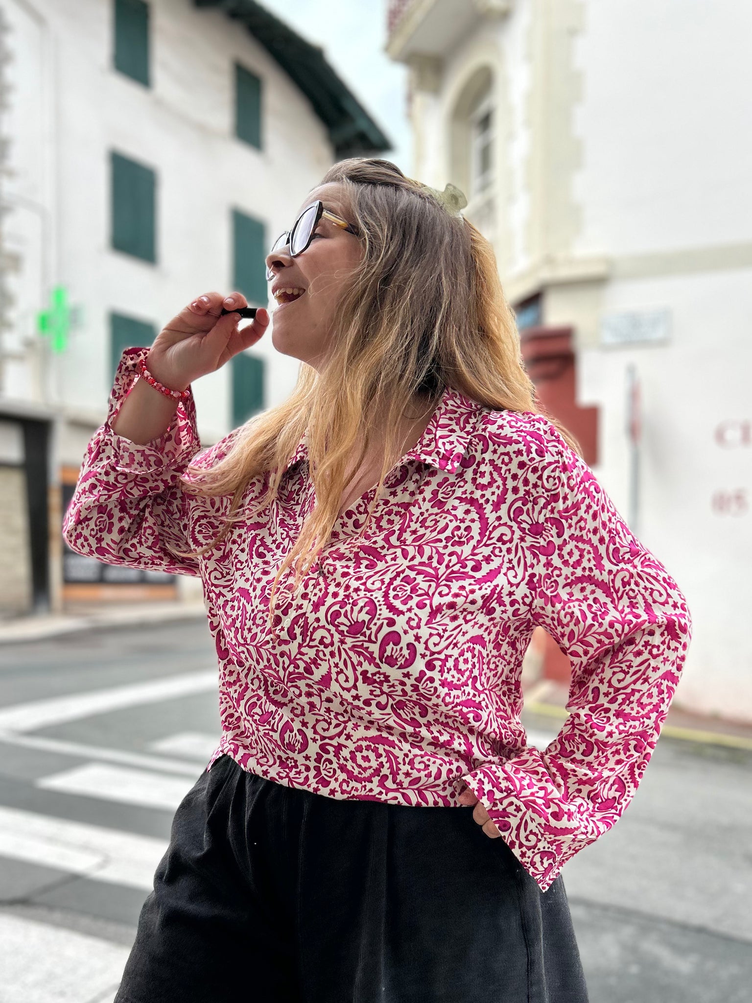 Cette chemise imprimée au style bohème est une pièce forte et facile à porter au quotidien. Son imprimé rose et écru apporte une touche de caractère tout en restant féminin et lumineux. Sa coupe fluide assure un tombé agréable et confortable, parfait pour sublimer toutes les morphologies.