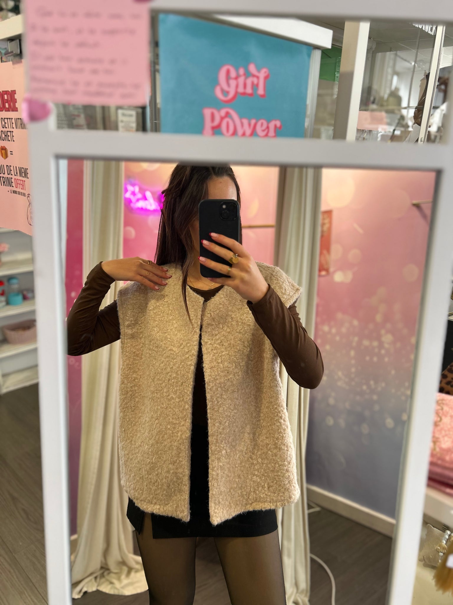 🤍 Gilet sans manches en maille bouclée "Livia" – Beige Crème
