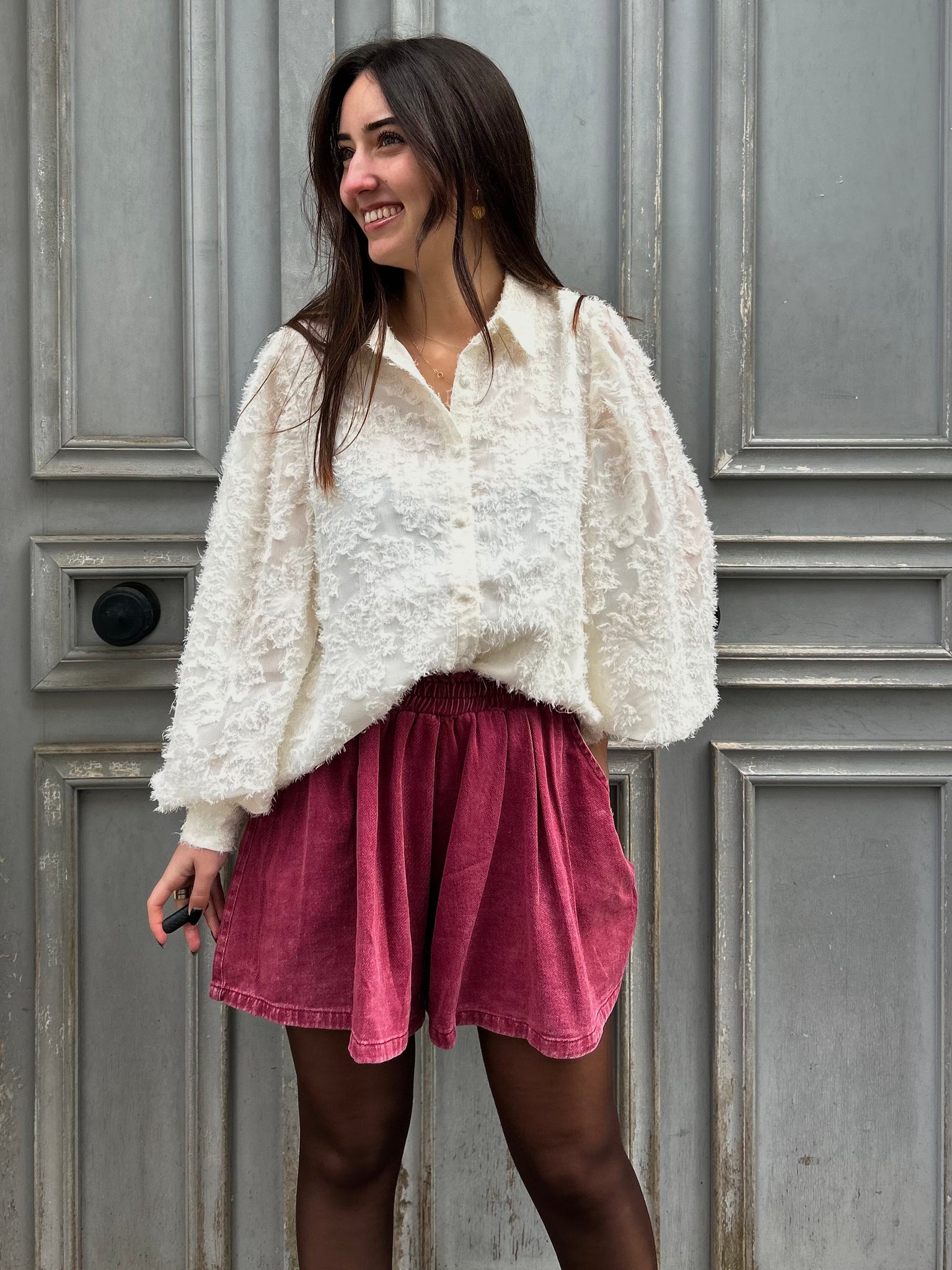 Avec une blouse légère, un petit pull, un sweat ou même un simple t-shirt, il fait tout le look à lui tout seul.