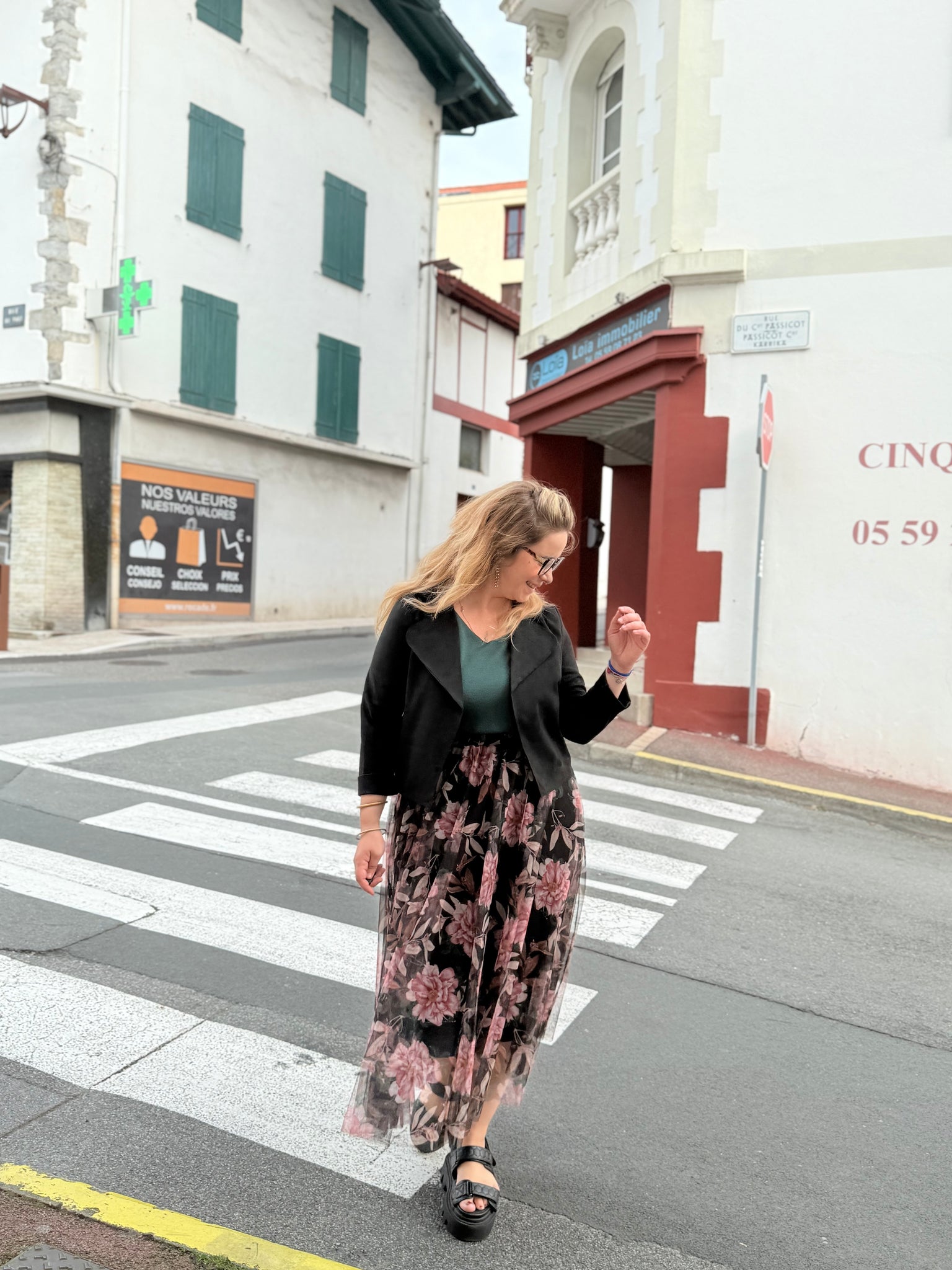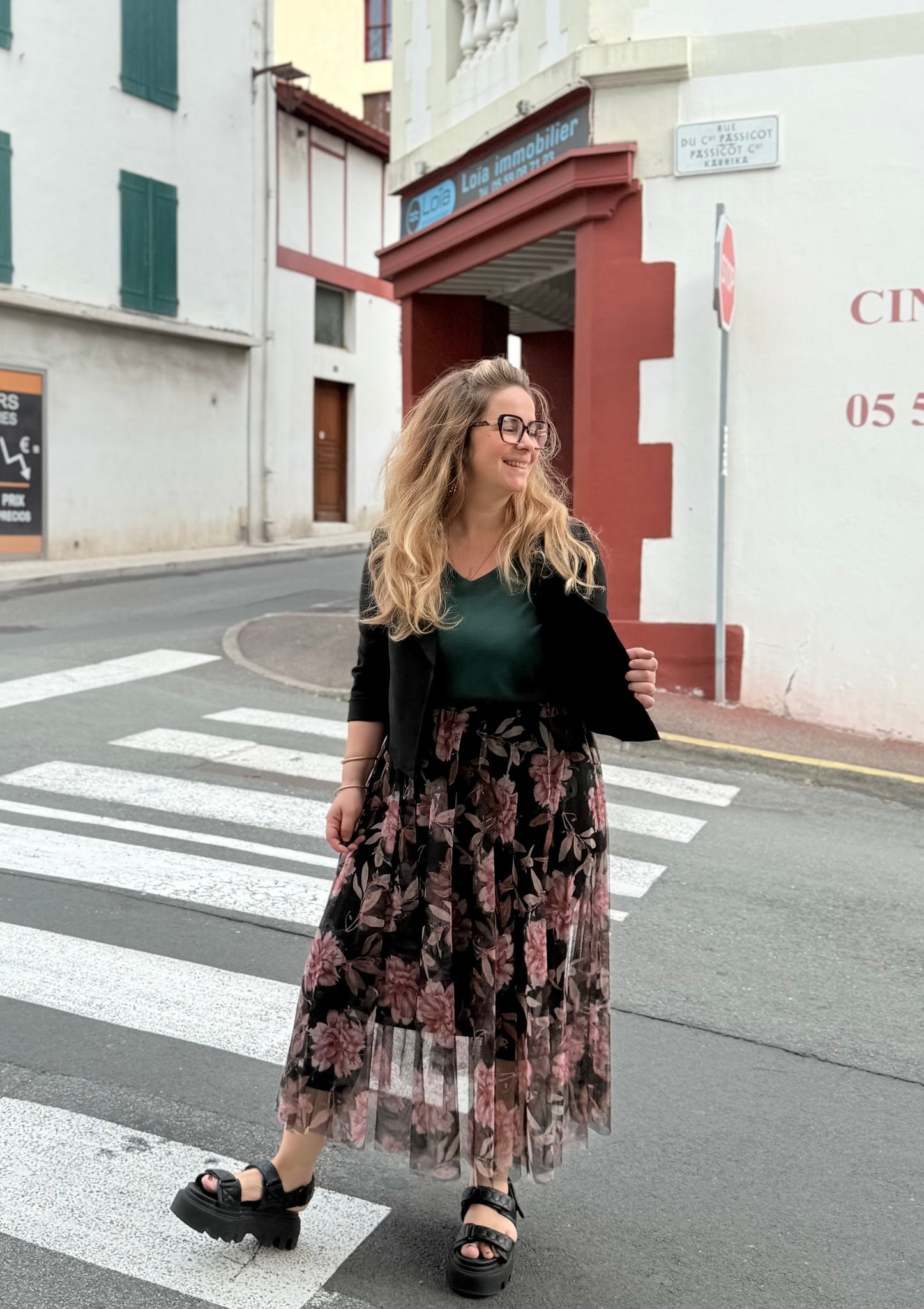 - Jupe longue en tulle fluide avec imprimé floral